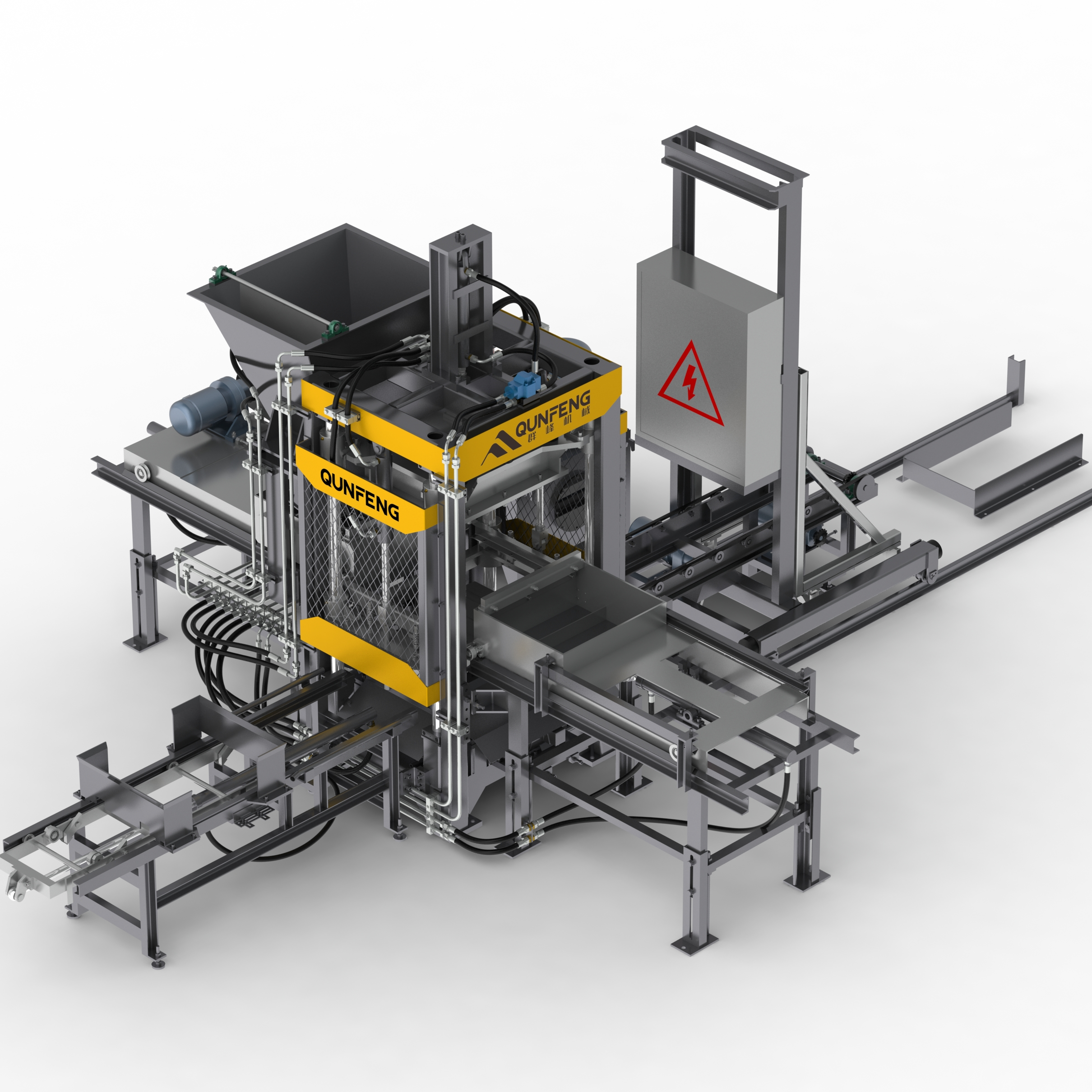 रोटरी फीडर: 360 डिग्री घूमने वाला रेक समान रूप से फ़ीड करता है, ठोस ईंटों और फुटपाथ ईंटों के लिए अधिक उपयुक्त है